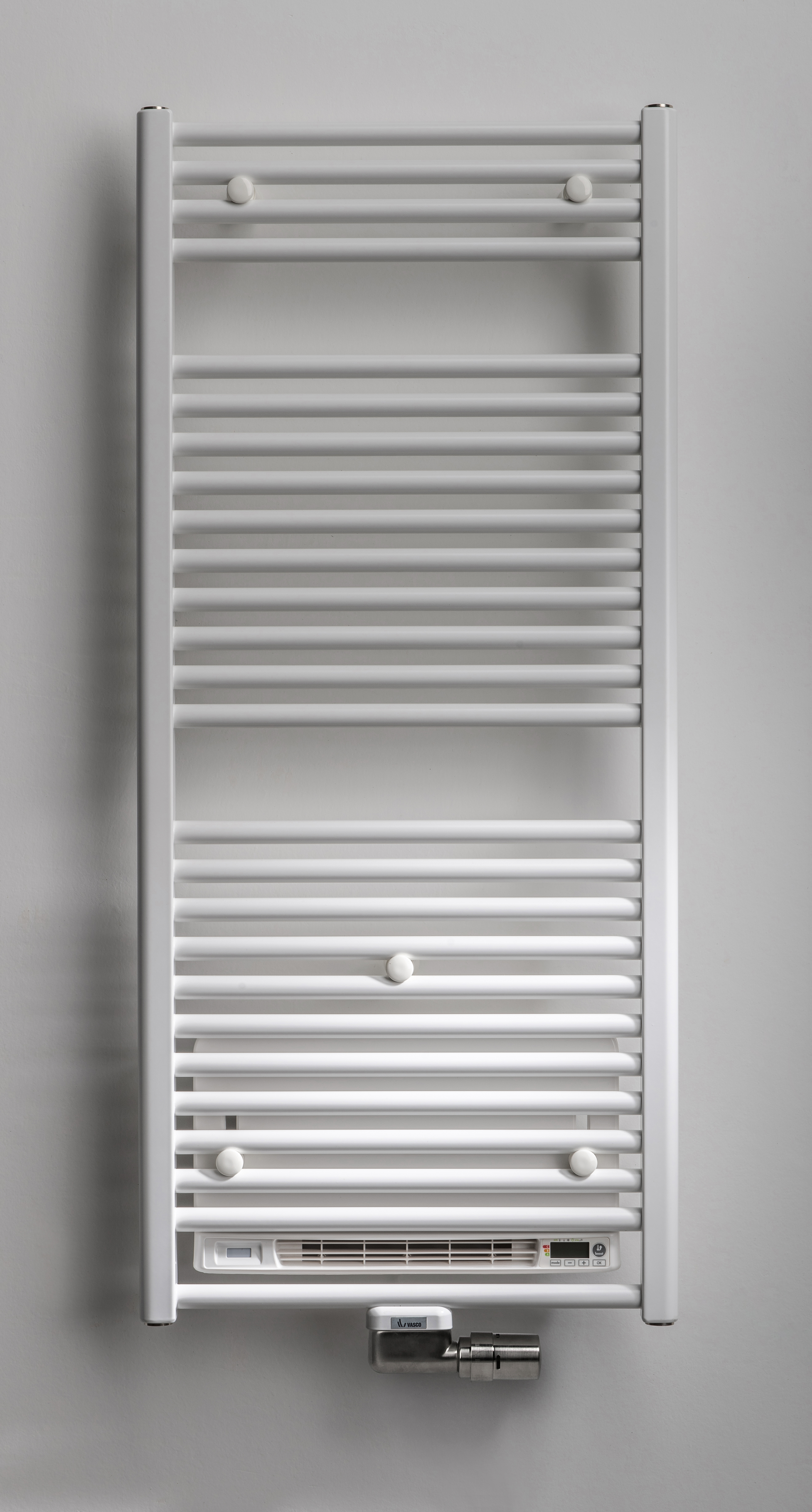 Vasco présentera également son principe de contrôle wifi pour les radiateurs électriques. Rien de plus pratique pour contrôler les radiateurs, la ventilation et le chauffage par le sol que l’appli Vasco Climate Control. Grâce au nouveau E-Volve Wifi, l’appli de Vasco contrôle désormais aussi les radiateurs électriques via le réseau wifi du domicile. Le module présente un design compact, épuré et peut facilement être monté au mur et raccordé électriquement. Il communique par Bluetooth avec un petit capteur de température que l'on installe dans la même pièce. E-Volve Wifi sera disponible dès le printemps 2020 pour les radiateurs électriques de salle de bains Iris, Agave, Aster, Carré Bain, Zana Bain, Viola et Niva.