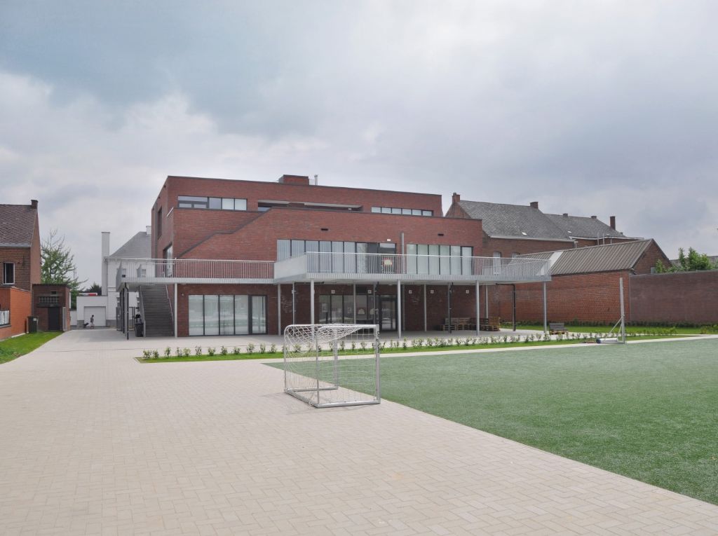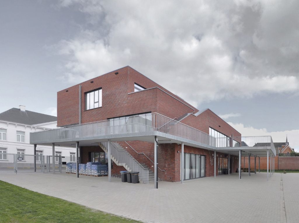 A Brakel (Flandre-Orientale), le programme de rattrapage flamand "Scholen voor Morgen" a permis de remplacer quatre pavillons d’urgence datant de... 1947 par un nouveau bâtiment. Le programme, destiné à héberger une école secondaire générale et technique, compte 10 classes, une salle polyvalente divisible, un laboratoire, des locaux de support et une cour de récréation couverte. C'est le bureau bruxellois Planomatic Architecture, associé au bureau germanophone Radermacher & Schoffers Architekten, qui a conçu le projet, parmi plusieurs autres faisant partie du même marché (à Bruges et Oostakker).