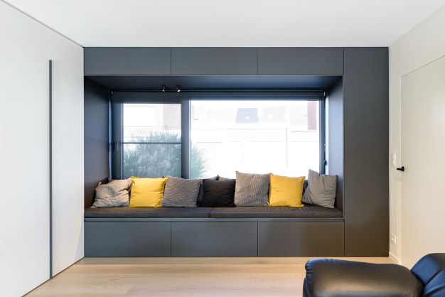 Annelies et Mathys, les propriétaires, vivent dans leur maison rénovée depuis quelques mois maintenant. Ils auraient voulu du parquet, mais ne voulaient pas être esclaves de son entretien. Car le luxe se mesure aussi en temps et sérénité :
