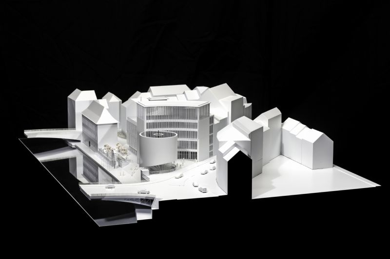 Le projet concerne l’un des plus beaux lieux de la ville. Situé au confluent de la Sambre et de la Meuse, au pied de la citadelle de Namur, il signe l’entrée de ville en amont de la Place d’Armes. Très inspiré par le site, Philippe Samyn en a analysé le potentiel à travers ses caractéristiques historiques et patrimoniales mais aussi géographiques et sensorielles au sens large. Les intuitions formelles qui en découlent seront ensuite vérifiées par les approches pragmatiques propres au bureau bruxellois. L’ensoleillement, la proximité immédiate de la Sambre, la qualité de l’air, l’utilisation actuelle du bâtiment et l’appropriation publique de ses espaces extérieurs interviendront dans la conception architecturale.