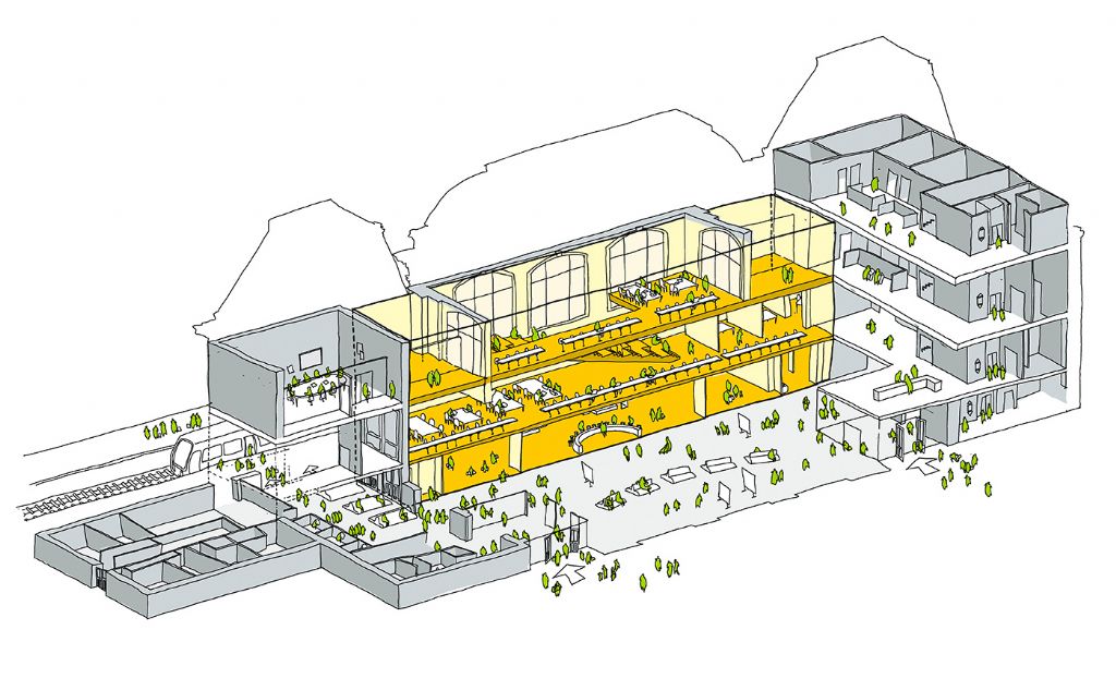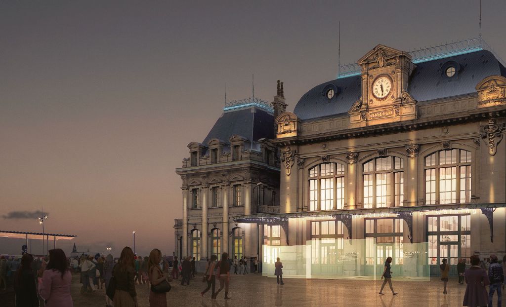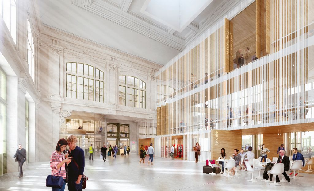 Comme par un ‘retour de balancier’, le nouveau propriétaire des lieux a reloué 15% de l’espace de la gare… à la SNCF. Une salle d’attente pour les voyageurs ainsi que des guichets pour la vente de billets sont donc prévus dans la salle principale.
