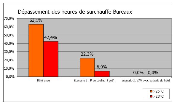 Le confort thermique d’été est assuré de manière passive dans les chambres de la MRS et les appartements de la résidence-services par la limitation des charges solaires (stores extérieurs motorisés) et des charges internes (éclairage performant : 2W/m².100lux en moyenne, régulation sur base de la lumière du jour, détection de présence). La grande inertie du bâtiment, laissée un maximum accessible, permet aussi d’aplanir les pics de température dans l’ensemble du bâtiment. Les mêmes mesures de limitation des charges sont prévues au rez-de-chaussée de la MRS. En complément, les locaux du personnel à ce niveau bénéficieront de top cooling et la salle à manger commune sera équipée d’un système de plafonds froids, de manière à garantir un confort optimal aux résidents en cas de canicule, comme le prévoit la règlementation.