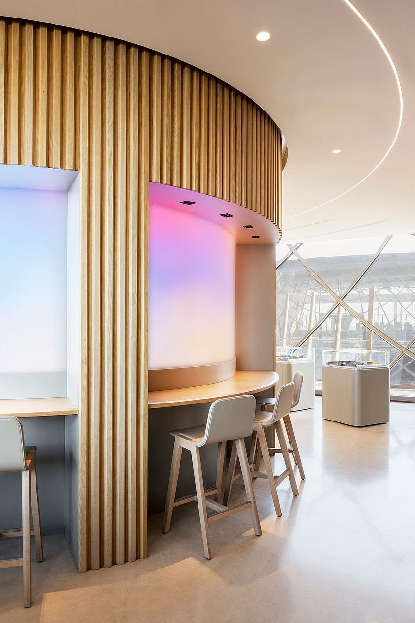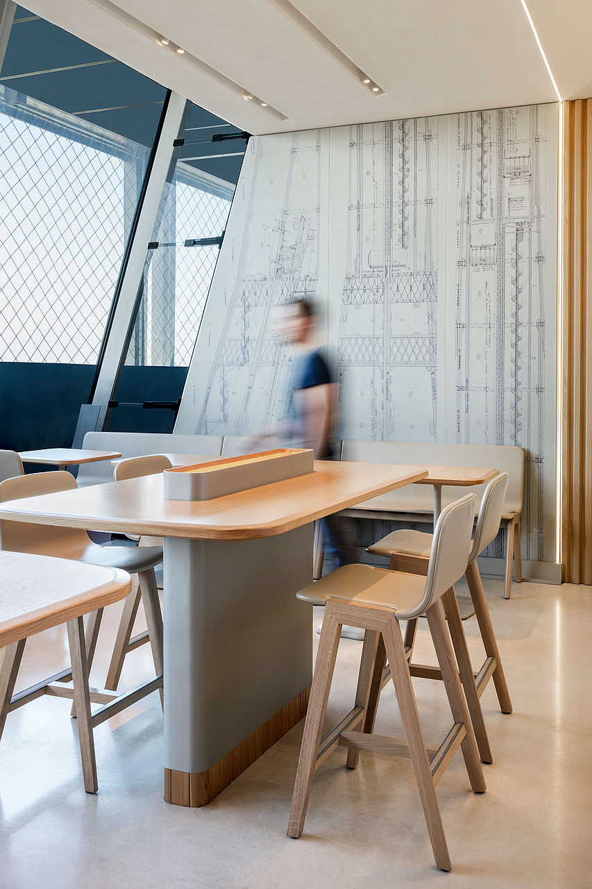 La gastronomie de luxe pose également des défis particuliers en matière d'ambiance. Celle-ci doit être accueillante et élégante, sans pour autant détourner l'attention de l'essentiel, à savoir les impressions culinaires. En même temps, il faut répondre à des critères pratiques tels que la facilité de nettoyage et une certaine robustesse. Et dans le cas particulier de la Tour Eiffel, l'intégration parfaite dans une situation spatiale exigeante et l'utilisation optimale de l'espace sont cruciales.
