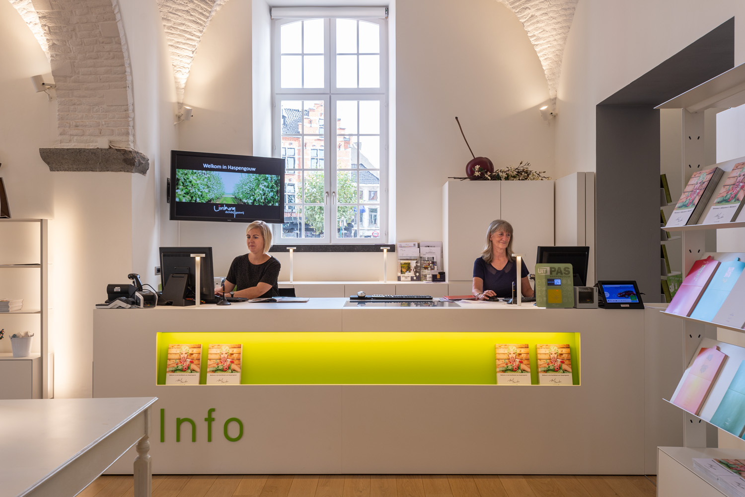 C'est une véritable cure de jouvence que vient de connaître l'Office du tourisme de la ville de Saint-Trond. Le bureau de design Alinea (Geel), porteur du projet, a en effet complètement rénové le comptoir d'accueil et la façon de se déplacer dans cet espace public. Le comptoir a été réaménagé pour une meilleure vue d'ensemble, la circulation a été fameusement simplifiée, les différences de hauteur de sol- dérangeantes - ont été supprimées et, grâce aux différents accès, l'ensemble est devenu nettement plus ouvert.