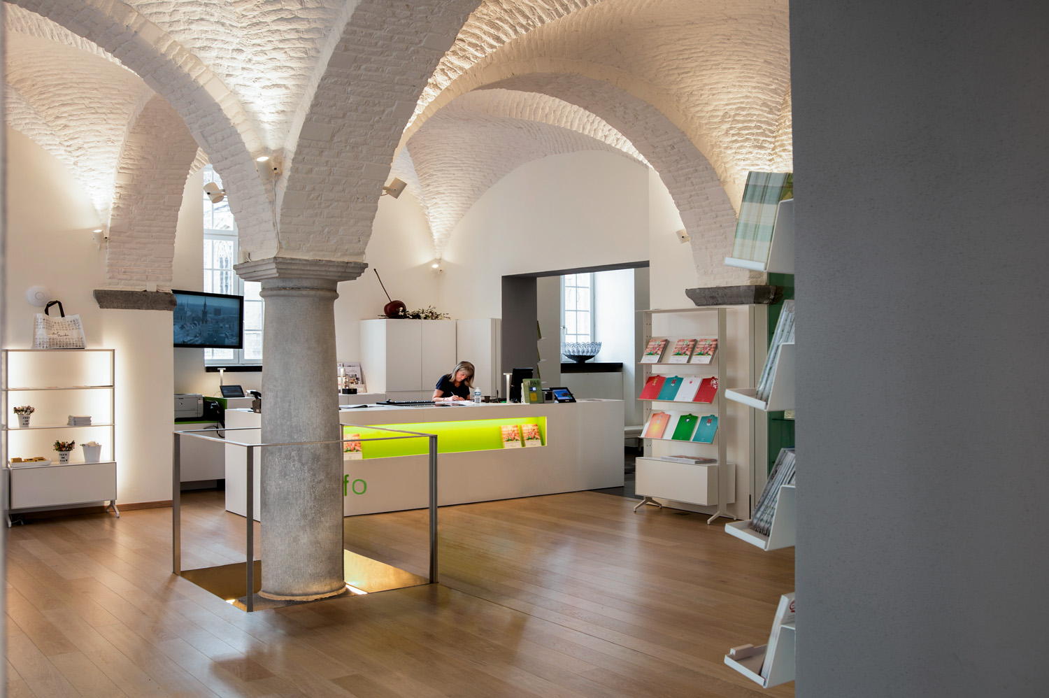 Alinea a toujours accordé une attention particulière au développement durable. Le gérant de l'agence, Leo Aerts, a d'ailleurs été l'un des premiers designers à recevoir, en 2009, le label d'écoconception d'OVAM pour son agence CURVA. En revoyant en profondeur l'éclairage de l'Office du tourisme, on a pu réduire la consommation d'électricité de 85% ! Les matériaux choisis pour la décoration intérieure se caractérisent par une très longue durée de vie et peuvent être recyclés de manière optimale après utilisation.