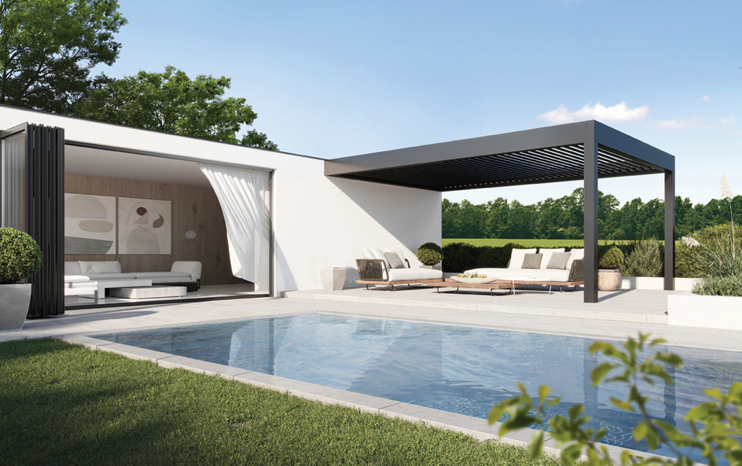 Aliplast présente à Batibouw une pergola bioclimatique de 8 mètres