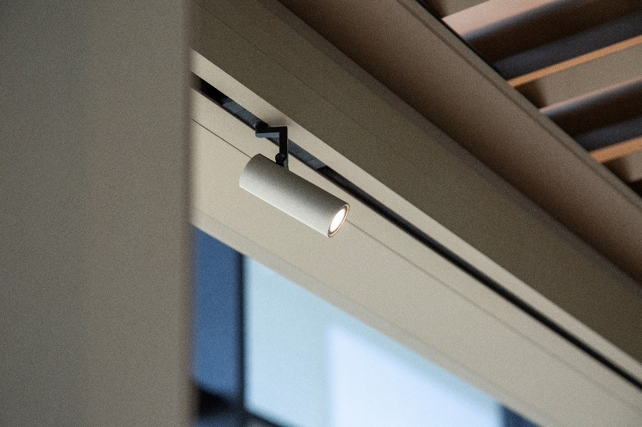 Le réglage de l’intensité ou l’orientation des spots s’effectuent via l’appli Renson Connect ou Somfy, qui contrôle également les lames en toiture, l’éclairage LED, l’audio et le chauffage sous votre espace de vie en plein air. « Grâce à son intégration dans le système de rails de la pergola, le spot peut être déplacé sans effort et orienté en détail selon les préférences. Le contrôle via l’application améliore la facilité d’utilisation, un paramètre important de tout nouveau développement que nous proposons », affirme Sue Deloore, Product Manager chez Renson. Le bras du spot peut pivoter à 360° autour de la charnière supérieure du rail, le spot proprement dit dispose en plus d’un angle de rotation de 150° autour de la charnière inférieure. Une liberté sans précédent pour un éclairage directionnel.