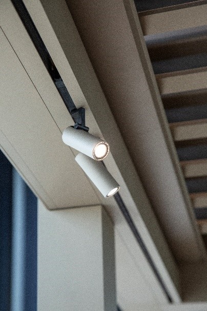 Combiner un éclairage d’ambiance avec des spots directionnels ? Aucun problème. L’installation des spots Kreon est un jeu d’enfant. Il suffit de clipser le bras du spot sur le support de rail, de le glisser dans la fente d’un rail Loggia à la position souhaitée et d’enclencher les clips des deux côtés. Des caoutchoucs prémontés maintiennent les câbles des spots et les dissimulent, pour une intégration subtile dans la structure d’un espace de vie en plein air.