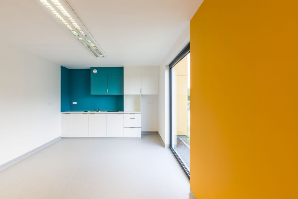 Helium3 signe la conception lumineuse et colorée d'une crèche à Momalle, en région liégeoise. On sent ici que le bien-être des enfants mais aussi celui des puéricultrices a été au centre des préoccupations des architectes.