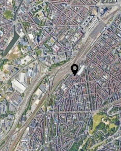 Le projet se développe au n°100-104 rue de Belgrade, non loin de la gare du Midi. Cette ancienne imprimerie constitue un exemple intéressant du patrimoine industriel et abrite aujourd’hui le CUBE, un centre urbain d’expression ainsi qu’une recyclerie sociale. L’opération de rénovation – extension, financée dans le cadre du contrat de rénovation urbaine « Avenue du Roi », doit permettre de reconfigurer complètement la recyclerie et de construire 20 logements tout en affichant des ambitions élevées en matière d’économie circulaire et de réemploi.