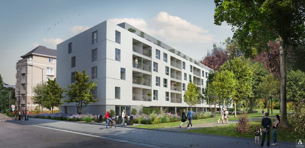 Le deuxième projet, GreenWood, est développé par EIFFAGE DEVELOPMENT s.a. et les bureaux d’architecture CERAU s.p.r.l. et DXA.ARCHI s.p.r.l., et proposera 39 logements conventionnés et 15 logements libres, partageant les mêmes espaces communs pour assurer une mixité sociale cohérente. Une attention particulière a été apportée à l’espace paysager qui disposera d’une zone végétalisée commune, d’une zone potagère et de terrasses privatives séparées par des claustras en treillis métalliques remplis de copeaux, ce qui apportera une belle intimité aux logements en rez-de-chaussée.