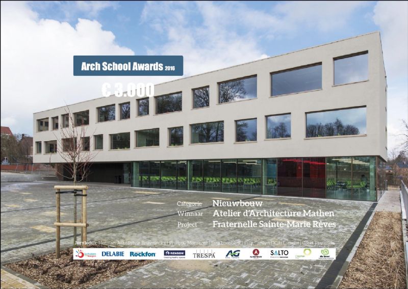 L'information était passée inaperçue mais mérite d'être relevée : le 10 mars 2016, l'Atelier d'architecture Mathen s'est vu remettre un Arch School Award 2016 dans la catégorie "nouvelles constructions” pour l'école Sainte-Marie à Rèves. Au nez et à la barbe de nombreux autres projets de qualité, quasi tous flamands. Le jury était d'ailleurs aussi uniquement composé de personnalités du nord du pays.