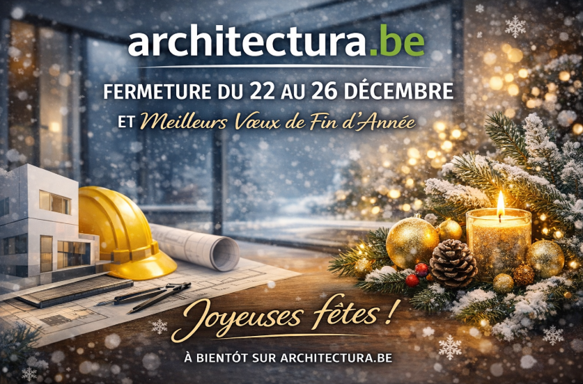À l’approche des fêtes de fin d’année, la rédaction d’Architectura.be marque une courte pause. Nos activités seront temporairement suspendues afin de revenir dès la fin décembre avec une veille éditoriale renforcée au service des professionnels de l’architecture, de la construction et de l’immobilier.