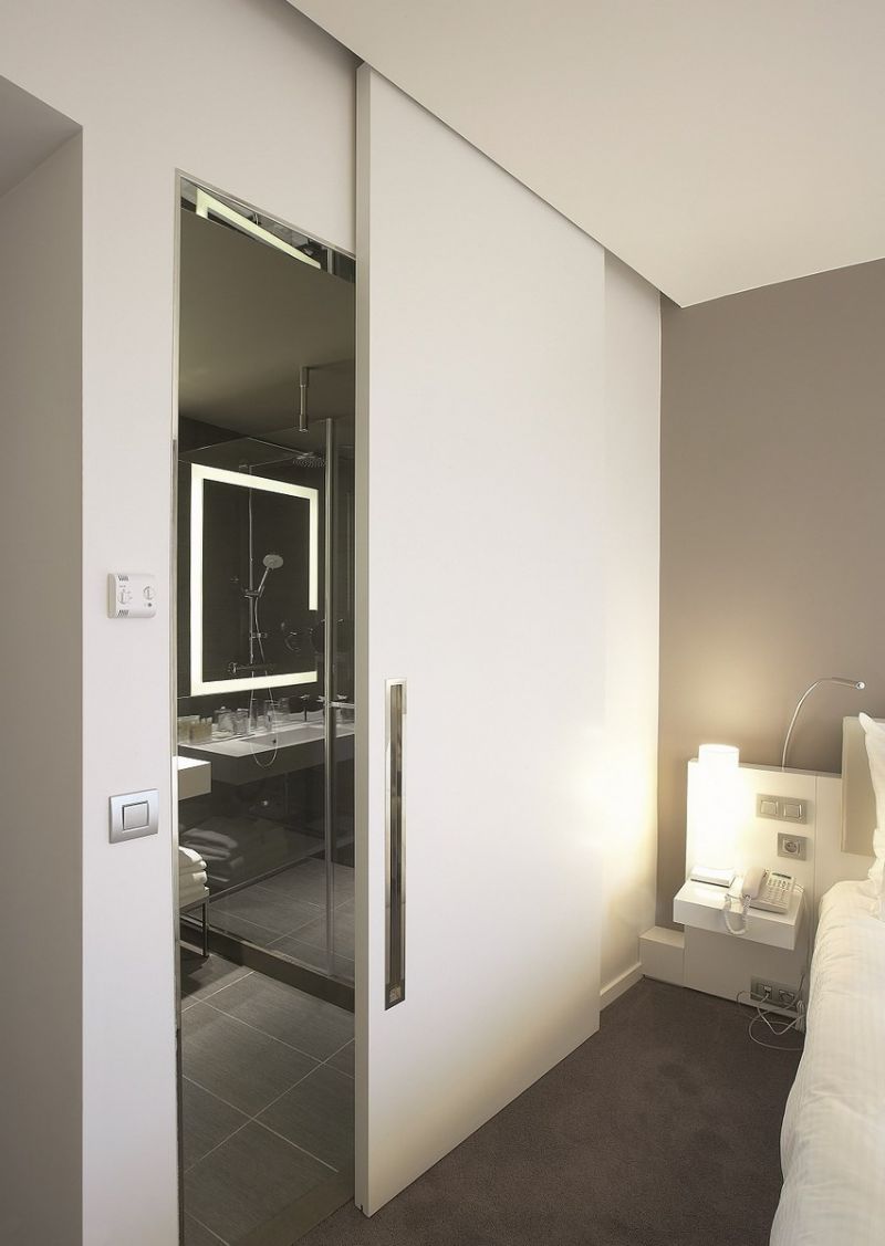 Le système pour portes coulissantes intérieures, argenta® proslide peut être intégré dans des applications résidentielles mais s’adresse particulièrement aux projets de construction et de rénovation dans les bureaux, les écoles, les hôpitaux, les établissements de soins, le secteur Horeca, les hôtels,… Ce système pour portes coulissantes est livrable avec l’arrêt réglable ‘Standard Stop’ ou le ‘Slow Stop’ pour une fermeture automatique sans choc. C’est un système d’arrêt et de roulement tout en un qui arrête la porte de manière douce, dosée et contrôlée. Ce ‘Slow Stop’ est vissé dans le profil supérieur, ce qui ne nécessite aucun espace supplémentaire. Grâce au module unique ESSI (Easy Slow Stop Install-Module), l’amortissement ‘Slow Stop’ peut être monté et démonté très simplement sans devoir démonter tout le rail supérieur – un must pour les applications entre deux murs.