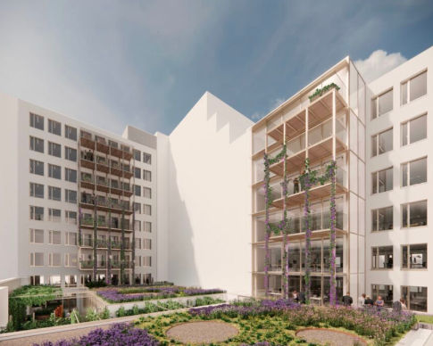 - Patios et toitures-jardins communes, créant des lieux de rencontre conviviaux et une meilleure qualité de vie pour les usagers.