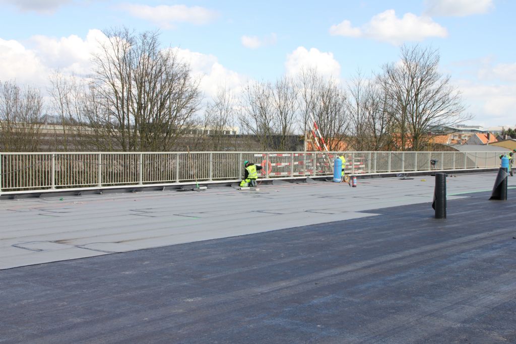 Depuis mars 2017, l’agence des routes et de la circulation de Flandre orientale (Agentschap Wegen en Verkeer Oost-Vlaanderen) travaille à la construction de deux nouveaux ponts sur la E40 à Merelbeke : le pont qui enjambe le Tijarm (cours d’eau) et le pont au-dessus de l’Oude Gaversesteenweg. Les deux ponts datent des années 50 et avaient besoin d’être remplacés de toute urgence. Les travaux devraient être achevés d’ici fin 2018. Pour l’instant, les travaux du côté nord de la E40 sont terminés, soit une superficie totale de 2300 m². SOPREMA a fourni à cet effet pas moins de 320 rouleaux d’étanchéité bitumineuse.
