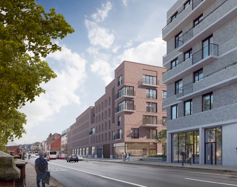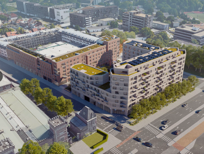 Le projet immobilier mixte mené par e-maprod et Belgian Land revient sur le devant de la scène, plusieurs mois après la dernière commission de concertation. Implanté sur le site des anciennes Glacières Royales à Auderghem, il fait aujourd’hui l’objet d’une nouvelle enquête publique. L’expression architecturale, confiée aux bureaux DDS+ et Urban Platform , a été revue en profondeur, intégrant des ajustements volumétriques, des gabarits retravaillés et une optimisation des façades.