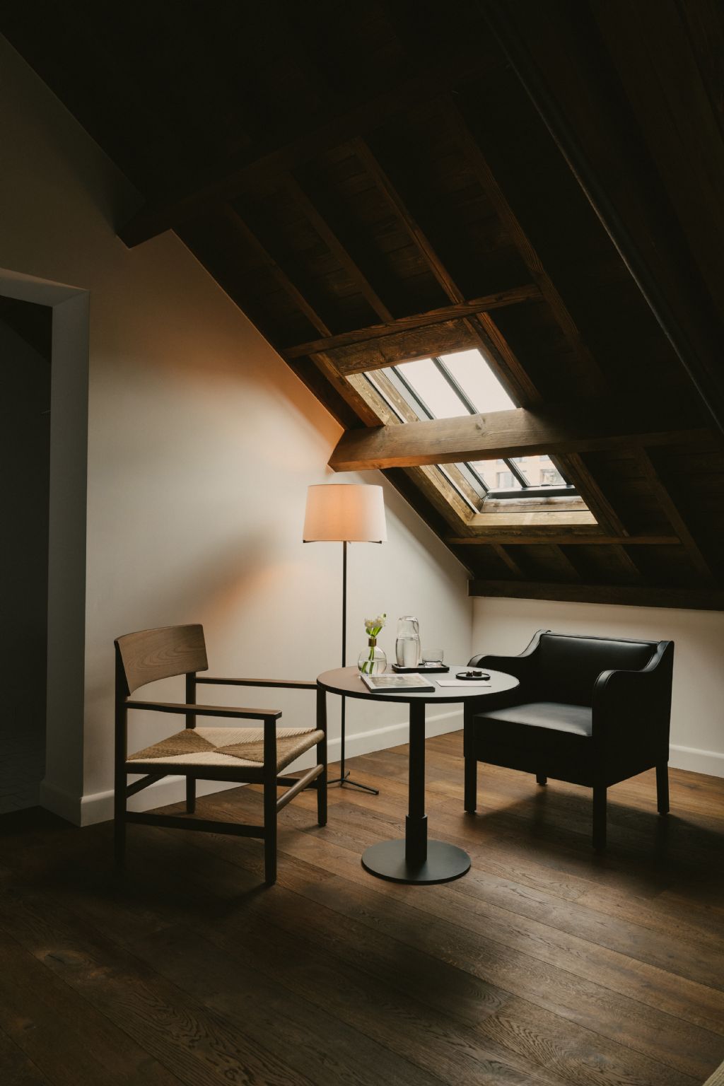 Pour transformer ce joyau caché et ses jardins et en faire le projet August, Vincent Van Duysen Architects a choisi de respecter l’ADN historique du site et de son environnement pour l’aligner sur les principes appliqués à la rénovation générale des autres bâtiments historiques classés, une restauration soignée de sa splendeur néoclassique en collaboration avec Callebaut Architecten et l’ajout d’éléments architecturaux contemporains en métal noir, reflets de sa nouvelle fonction de cadre hôtelier moderne. Au sein d’August, l’éclectisme créatif des styles de construction flamands à travers les siècles se mêle à un modernisme à la fois expressif et discret, offrant de la sorte un mélange parfait d’espaces publics et privés.