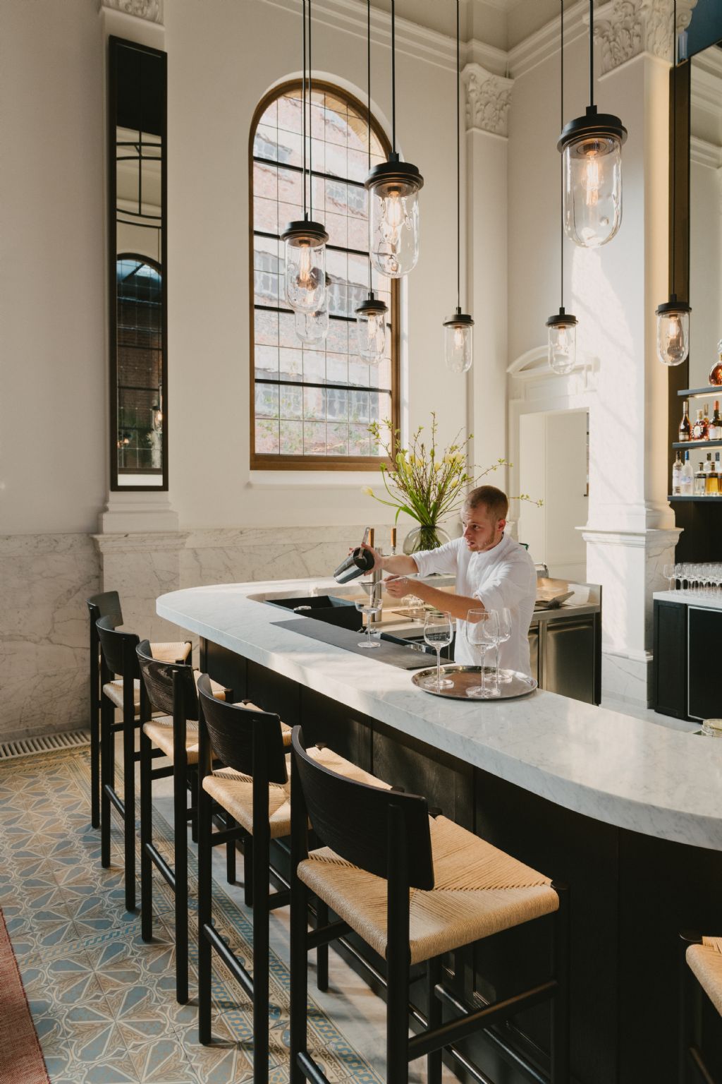 Vincent Van Duysen ne s'est pas contenté de la conception de la rénovation, il a également créé, tout spécialement pour August, la vaisselle du bar et du restaurant. Conçue pour la marque Serax, la collection 'Passe-partout' englobe des verres, de la vaisselle en porcelaine, des couverts et des objets en bois, et multiplie les allusions au passé.