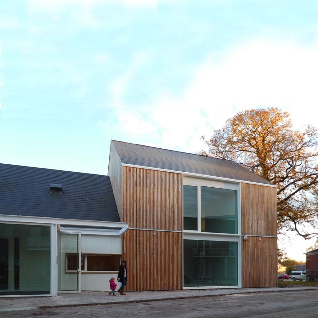 En premier lieu, la crèche ‘Les Petites Châtaignes’ à Gembloux. Cette construction est l’aboutissement d’un accouchement rendu difficile par une quantité de contraintes jamais rencontrées auparavant. Le projet a aussi représenté un combat pour défendre nos convictions. Une première crèche existante, une rue, un parc et des châtaigniers remarquables, chacun de ces éléments a chacun limité le projet et nécessité une hyper compression du programme.