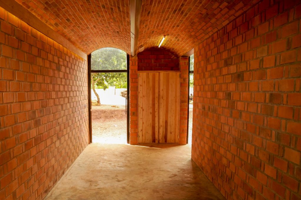 Une école de remédiation à Rwamishiba, au Rwanda. Les matériaux disponibles dans le pays et la qualification de la main d’œuvre locale ont été les éléments déterminants dans la conception du projet. Comment construire en maçonnerie avec moitié moins de béton, sans produits pétroliers et avec très peu de bois ? Comment se protéger de la surchauffe et des pluies violentes ? Comment éviter la dépendance aux technologies et leur maintenance ? Comment être autonome ? Ce sont là les objectifs visés mis à l’épreuve depuis l’ouverture récente de l’école. En plus de la conception à distance et in situ, avec mon grand frère maçon, nous avons formés les ouvriers du village à la construction de murs creux porteurs suivant le système de l’ONG Skat et des voutes sur poutres treillis métalliques. La dimension socio-économique locale et écologique était au cœur de la réflexion. Par cohérence, le chantier devait s’inscrire dans cet esprit. Je remarque que l’Afrique offre ce que l’Occident a perdu avec la règlementation et la normalisation des techniques : une liberté d’expérimenter, de construire autrement, de choisir sans pression commerciale les matériaux et les équipements. L’Afrique pourrait nous aider à nous remettre en question et à privilégier le bon sens plutôt que des réglementations à tout va.