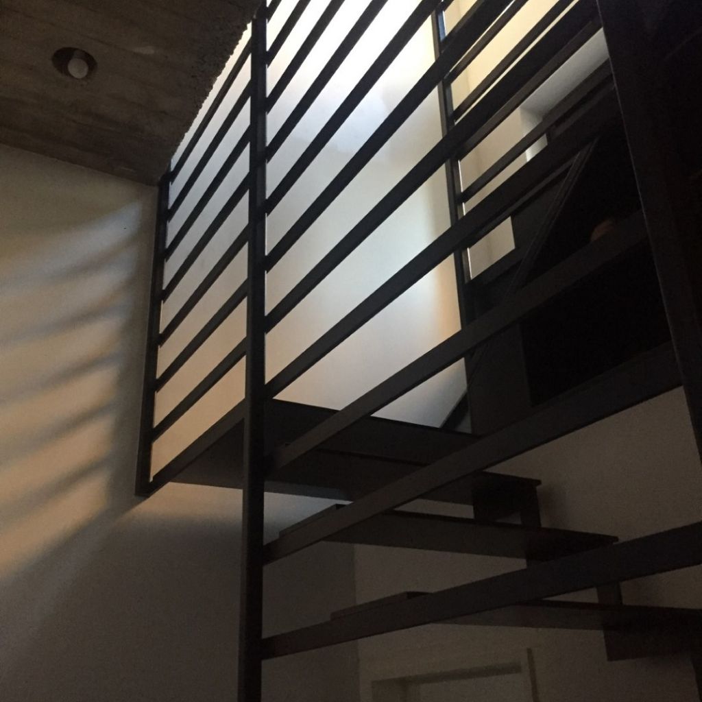 Phoenix Solo : une dent creuse de moins de 4 mètres de large sur une profondeur de 12 m ne laisse pas le choix d’une typologie ordinaire pour aller chercher la lumière. Ce n’est qu’au milieu d’après-midi que le soleil commence à rayonner à l’intérieur. Cette contrainte a dès lors radicalisé la réponse architecturale en ouvrant totalement côté rue, orienté ouest. Une double paroi de fer et de verre règle la lumière directe et diffuse, la lutte contre la surchauffe et l’éblouissement, l’intimité, les vues, l’atténuation des nuisances sonores de la chaussée. Cette façade sert également de tuteur à la végétation tombante (à venir). Le tout est dessiné dans un registre de cadres tranchants qui, en basculant, donnent un relief vivant à un corps abstrait. Le volume d’accès à la toiture terrasse complète l’apport de lumière en matinée et début d’après-midi. A l’intérieur, le mitoyen enduit de blanc reçoit la lumière directe et la réfléchit dans le séjour. Les pièces diurnes trouvent naturellement leur place aux étages, bénéficiant de la meilleure lumière et des plus belles vues.