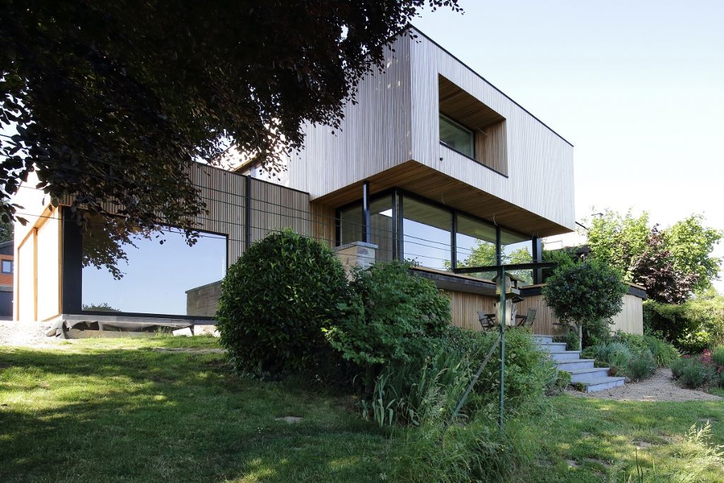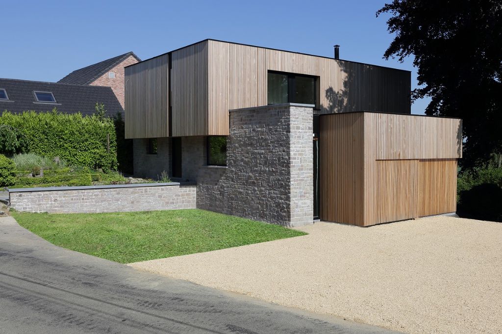 Ø Il s’agit d’abord d’un projet d’extension d’une maison d’habitation dans le village de Durnal, qui a muté en une très importante transformation. Une petite maison sans caractère mais située sur un beau terrain bien exposé, qui a été coupée en deux et dont la surface totale a triplée. Un défi urbanistique et technique réussi pour un résultat esthétique dont nous sommes très fiers, grâce notamment à une entreprise extrêmement compétente et une très bonne relation avec le maître de l’ouvrage, qui ne s’est jamais essoufflée.