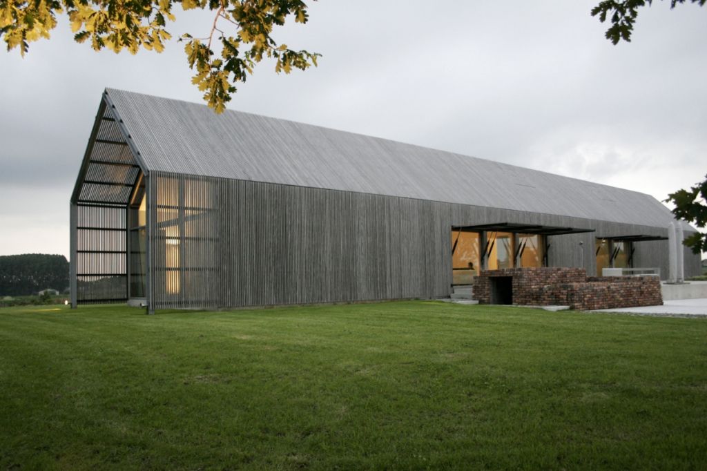 La Barn House à Roeselare de BURO II. La simplicité formelle du projet s’intègre comme un élément classique du paysage tout en renfermant une architecture très contemporaine.