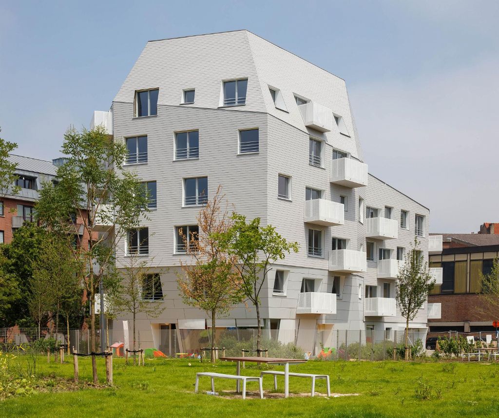 Les deux projets qui me procurent le plus de fierté actuellement sont Fontainas, plusieurs bâtiments de logements et une salle de sports dans un parc à Bruxelles, et Charmille-Schuman, deux écoles et une crèche accompagnées d’un jardin biologique. Il s’agit chaque fois de processus longs - 8 ans pour le premier, 12 pour le second – avec de longs moments de conception. Les deux projets impliquent tout un quartier, ils ont commencé par la réalisation d’un master plan par nos soins, d’une analyse urbaine amenant à la proposition d’un écoquartier. Ces projets ont une ampleur, une échelle urbaine et ils vont influencer la vie des gens. Au point de vue architectural, ce sont également de très beaux bâtiments qui apportent de la vie et dynamisent l’espace public.