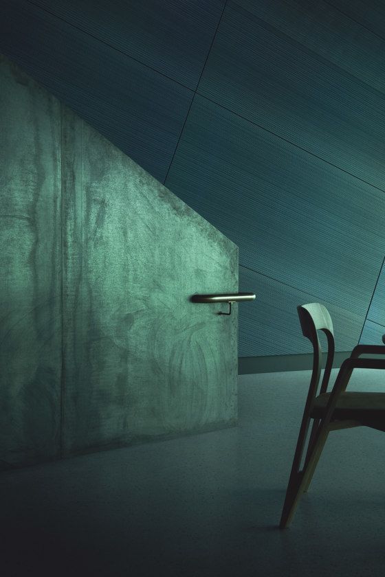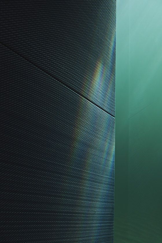 Plus on descend sous l’eau et plus la couleur du textile devient sombre et intense. Les tissus réalisés sur mesure, étendus sur des panneaux acoustiques, font référence aux couleurs d’un coucher de soleil s’enfonçant dans l’océan. À l’entrée, la couleur neutre du plafond se transforme en un rose coucher de soleil, puis un corail intense, un vert mer, et aboutit enfin à un bleu nuit lorsqu’on arrive dans la salle à manger. L'élégance subtile des panneaux de plafond finement tissés confère au bâtiment une ambiance sereine.