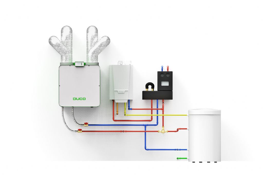 Un nouveau concept orienté vers l’avenir comme première étape vers plus de durabilité ? Le chauffage et la ventilation réunis en un seul système ? Le tout avec un confort maximal ? Avec la nouvelle DucoBox Eco Hybride intégrée au système C, vous êtes prêt pour l’avenir ! La pompe à chaleur de ventilation assure une qualité de l’air irréprochable. Elle se distingue par la régulation à 2 zones. Grâce à la séparation entre les zones de jour et de nuit via un système de clapets de réglage intégrés, elle atteint un rendement énergétique optimal. En outre, la régulation jour et nuit améliore sensiblement le confort acoustique.
