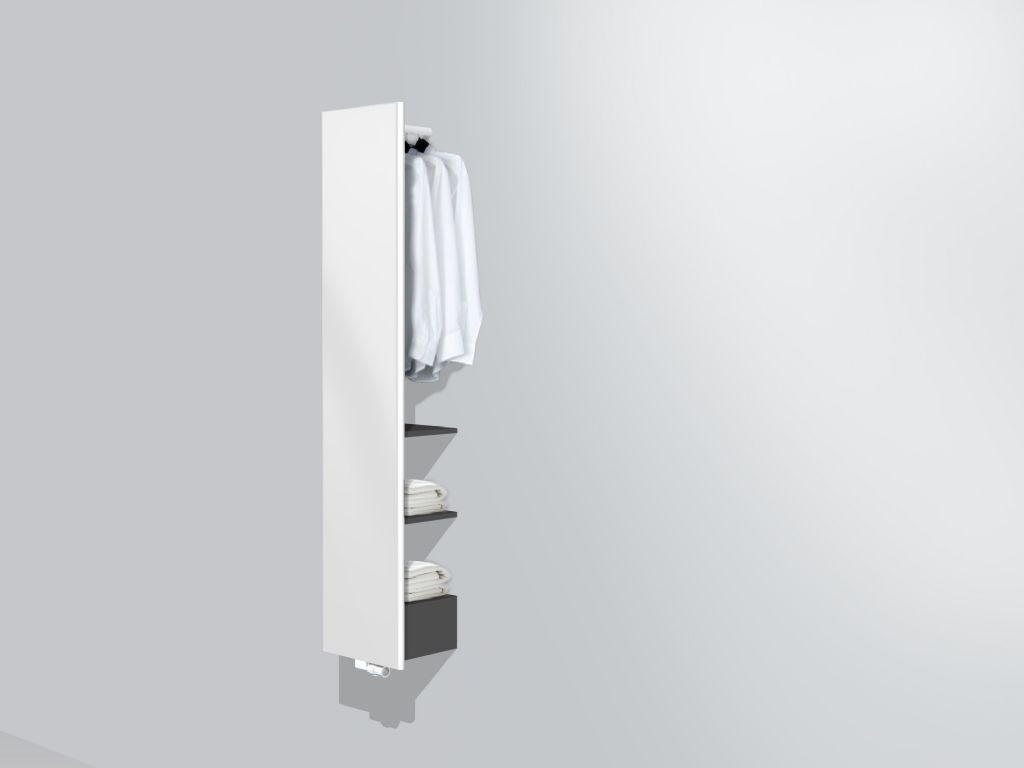 Inspiré du radiateur Niva très prisé, le nouveau Niva Bath est plus éloigné du mur (27 cm), ce qui laisse davantage de place à la fonctionnalité à derrière le radiateur. Vasco a mis au point un design ingénieux à accessoires intégrés : un portemanteau et des étagères.