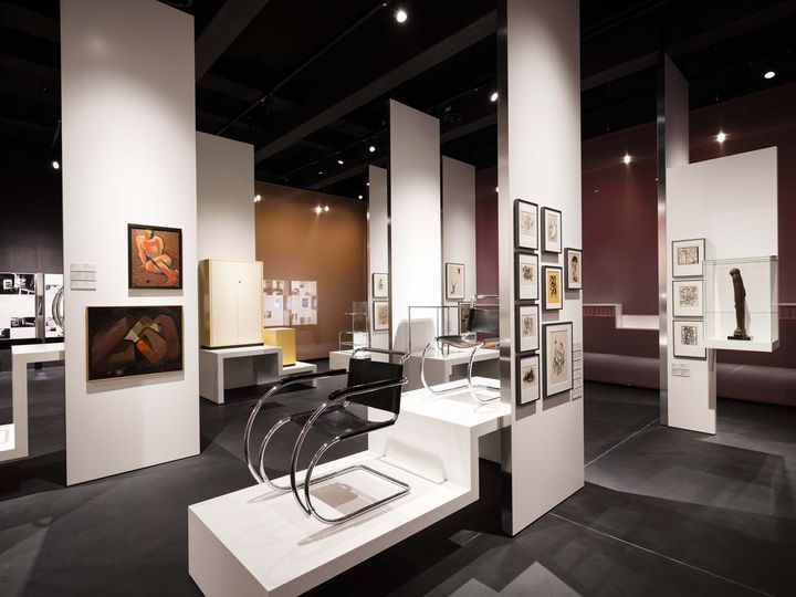 13 000 objets symbolisant le Bauhaus sont exposés dans ce musée inauguré en avril dernier; Conçu par l'architecte et professeure d'architecture allemande Heike Hanada, en collaboration avec Benedict Tonon, le musée se présente sous la forme d'un cube clair sur un socle en béton. 24 bandes lumineuses horizontales éclairent l'intérieur de ce bâtiment épuré, construit sur 5 étages. Un escalier en cascade conduit aux différents niveaux et permet notamment d'accéder à des salles d'expo en double hauteur.