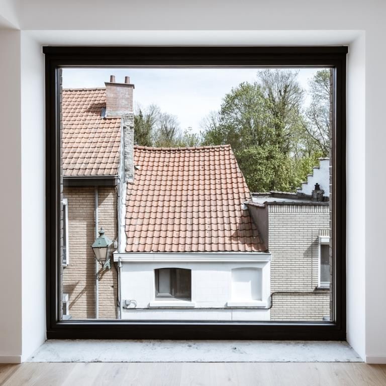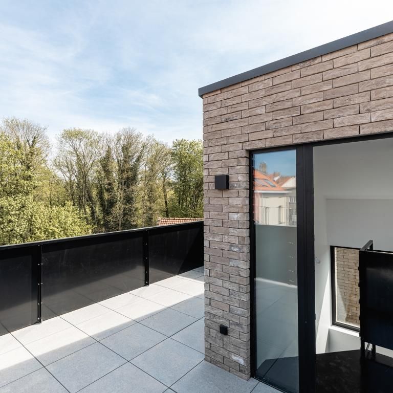 La brique est le matériau dominant du quartier. Pour bénéficier d’une lumière diffuse là où la lumière directe n’existe pas, le choix s’est arrêté sur une version de briques à la teinte claire. L’aspect mono matière a été poussé jusqu’aux linteaux, seuils et acrotères en briques collées, obligeant un soin des nœuds constructifs pour drainer les eaux d’infiltration. Cette mono-matière est coiffée par des feuilles métalliques noires : zinguerie, couvre-mur en retrait du bord, garde-corps plein. Les garde-corps en tôle pleine et haut de 1,20 m, privatisent la terrasse tout en conservant, même en position assise, les vues sur les paysages alentours.