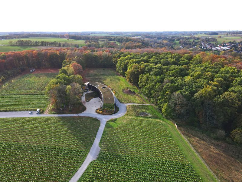 On ne conçoit ni ne construit tous les jours un chai pour la production de vin et d’eau-de-vie en Belgique. Et cela vaut tant pour le maître d’ouvrage que pour l’architecte. Le propriétaire du Vignoble du château de Bousval souhaitait un chai durable. Charly Wittock, du bureau AWAA for cwarchitects sprl, lui a sorti un grand cru architectural, qui figure parmi les nominés des Belgian Building Awards 2021, dans la catégorie Utility Building.