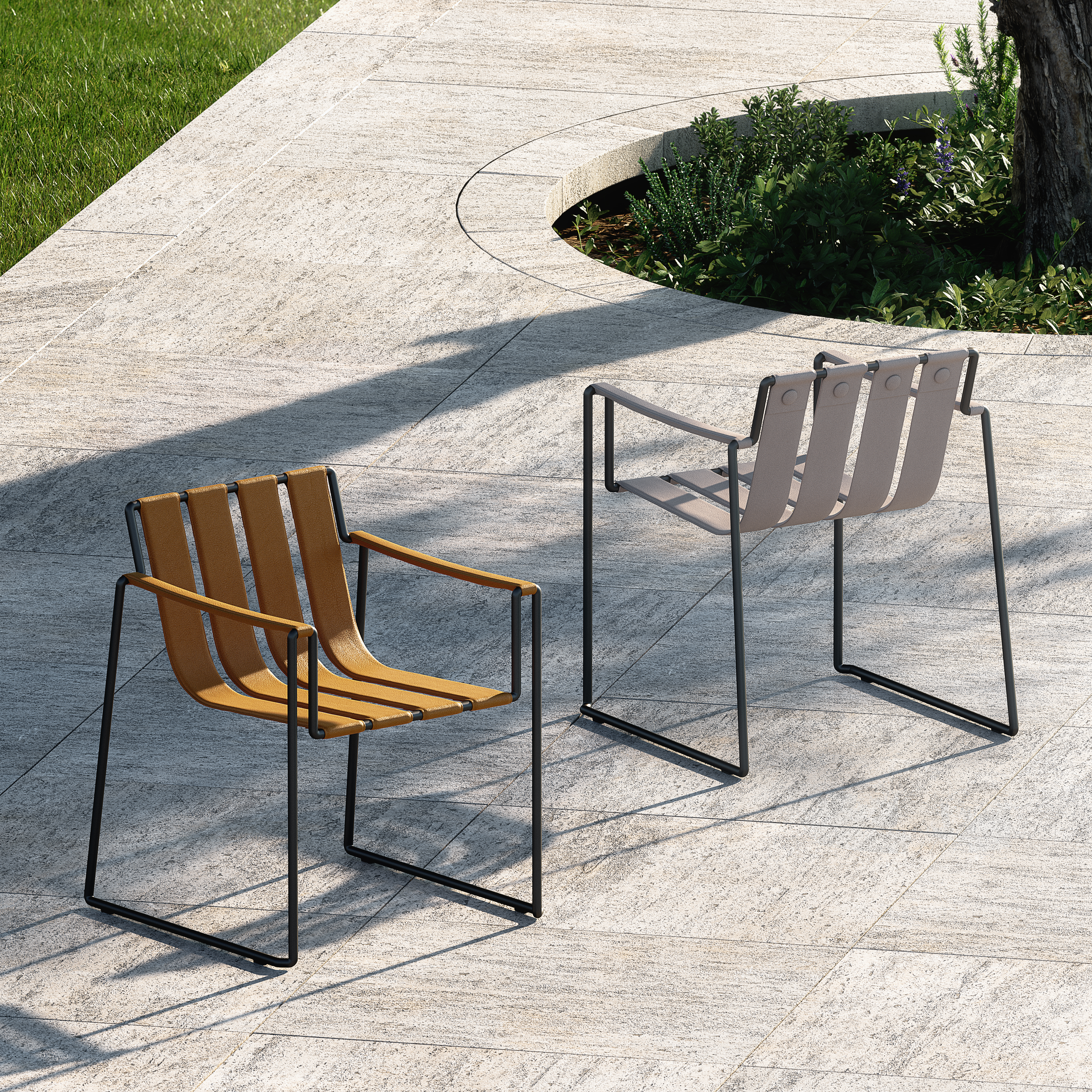 Des straps harmonieux habillent l'armature dénudée des meubles Strappy. Les bandes d'assise et les accoudoirs matelassés assurent un vrai confort. Peut-être pensez-vous que les straps sont uniquement composés d'éléments souples et doux ? Mais ce n'est qu'une illusion d'optique. Le cœur des straps est en effet constitué de bandes d'aluminium joliment dissimulées par la garniture. En plus de donner un look minimaliste, cet effet de trompe-l'œil présente un gros avantage : vous pouvez retirer facilement et rapidement les straps pour les nettoyer ou les ranger pour l'hiver. Solide, pratique et élégant !