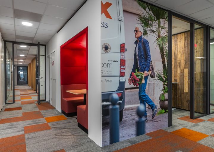 Beddeleem, en collaboration avec le bureau d'architectes Colliers International Belgium, a assuré la finition intérieure des bureaux de la société de courrier et de messagerie FedEx à Zaventem.