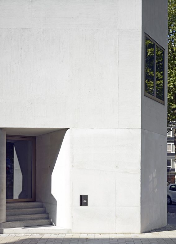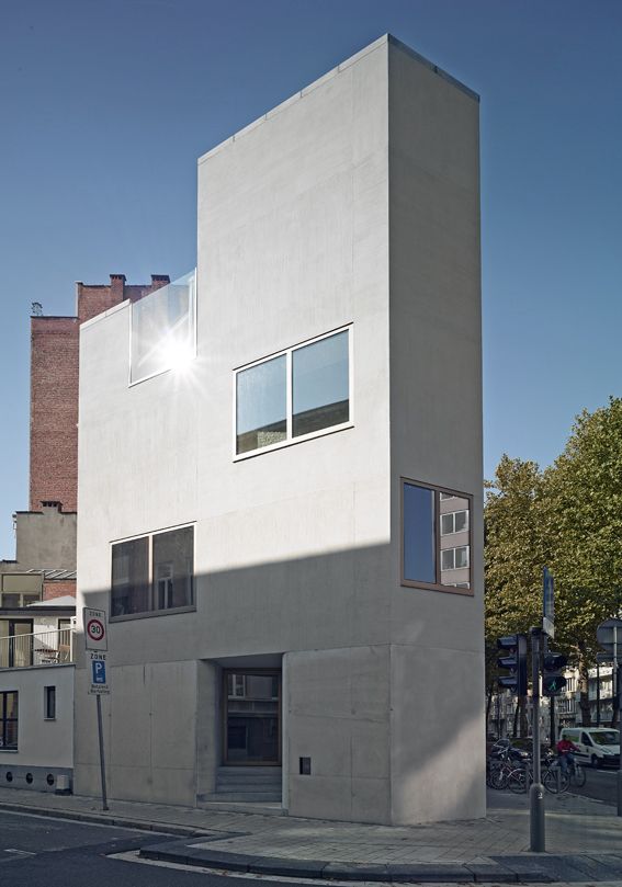Cette habitation est une ode à la ville du XIXe siècle. Un plan compact sur une parcelle de coin minuscule (à peine 50 m²) et un volume expressif, souligné par de grandes baies vitrées habilement dessinées et donnant sur la ville et la cime des arbres du boulevard. Un soupçon de minimalisme, sans doute, pour ce projet qui se caractérise aussi par ses côtés tactile, chaleureux, familier et douillet. Cette maison parvient à donner un nouvel élan au boulevard et à la rue transversale.