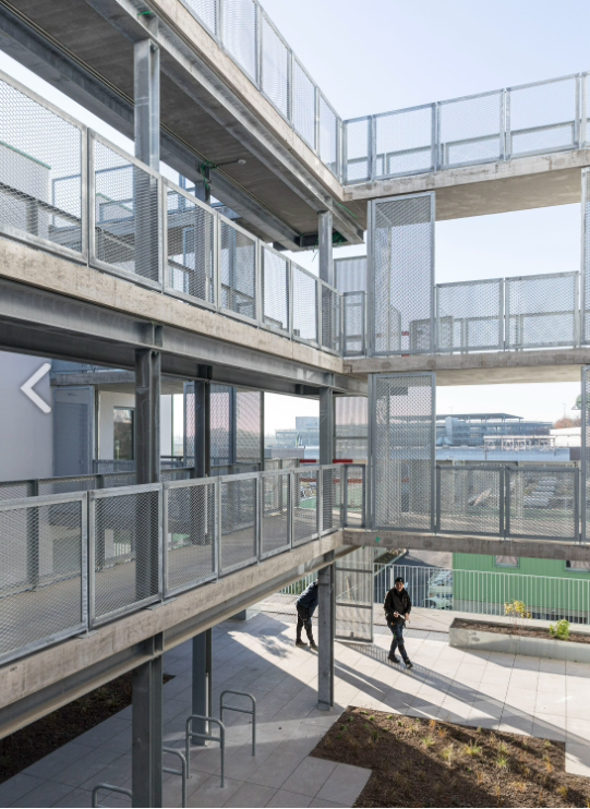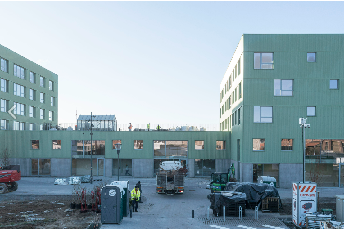 Des ateliers de PME, des logements et une constellation d’espaces collectifs qui soutiennent une mixité sociale intergénérationnelle (des places publiques, des jardins, des jardins potagers, une aire ludique flexible et polyvalente, des coursives semi-privatives)… Le projet favorise les échanges et le vivre ensemble entre ses différents utilisateurs, et propose un modèle de mixité innovant et unique à Bruxelles.
