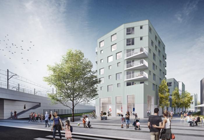 Réparti sur 3 bâtiments, le programme combine PME (7519 m² de locaux d’activités productives, showrooms, bureaux), logements acquisitifs à prix conventionné (63 unités) et 3.522 m² d’espaces publics qui facilitent les échanges et les interactions entre les utilisateurs du site.