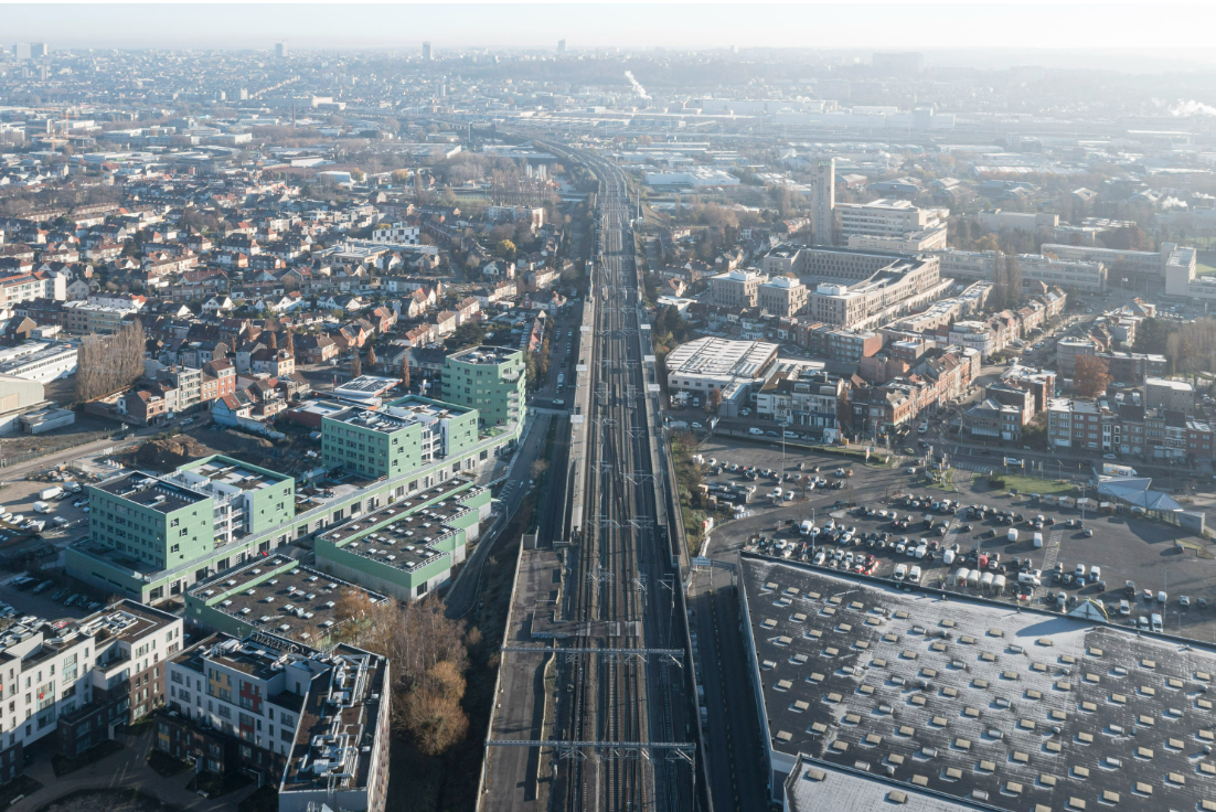 Situé à Anderlecht à la croisée de plusieurs grands axes (chemin de fer, Ring et Chaussée de Mons), NovaCity recoud le tissu urbain de son quartier environnant par le biais d’un programme mixte. Faisant cohabiter fonctions économiques et logements, le projet envisage la mixité fonctionnelle comme une opportunité de cohabitation des usages au service d’une société inclusive où l’on vit, travaille et se rencontre.