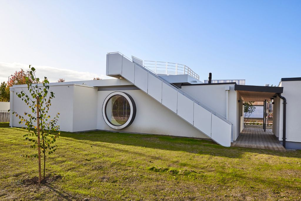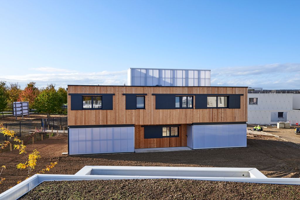 Raphaël Ricote, architecte au sein du bureau AREP : « Nous nous sommes attachés à créer une maison qui puisse s’adapter à la pluralité des usages et des façons de vivre de tous les européens, mais qui puisse également évoluer dans le temps afin de répondre au mieux aux attentes des familles qui vont venir y vivre. Nous avons organisé la maison autour de deux espaces. Le premier, au rez-de-chaussée, comprend une unité de vie autonome. Il permet de multiplier les usages, d’accueillir un étudiant, un proche parent ou devenir un lieu de travail. Autonome et isolé, il peut fonctionner comme un prolongement de la maison ou comme une entité en soi, avec une certaine indépendance vis-à-vis de l’espace principal au niveau supérieur. Le deuxième espace s’organise à l’étage autour d’une terrasse centrale, un patio conçu comme un espace supplémentaire pour les résidents. Il est directement lié aux différents espaces de vie et offre une certaine intimité vis-à-vis du parc tout en offrant des vues privilégiées sur celui-ci. L’agencement des lieux de vie de cet étage fait la part belle à la modularité et à l’adaptation aux besoins en permettant des agencements divers : grande chambre pour deux enfants, espaces de travail, chambres individuelles, espace de jeux et de loisirs. »