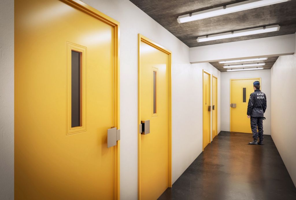 Le projet comporte un stand de tir, une armurerie ainsi qu’un complexe cellulaire. Les techniques et les matériaux ont donc été adaptés à des impératifs très stricts de sécurité et de fonctionnement. Il en va de même pour les façades du bâtiment (vitrage blindé, sas sécurisé, etc.).