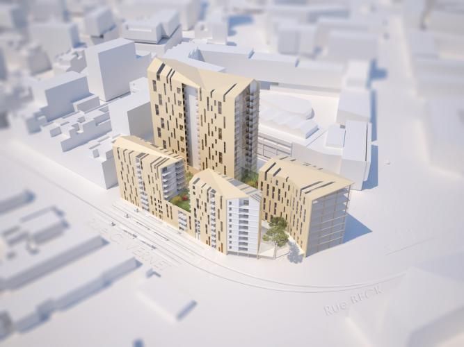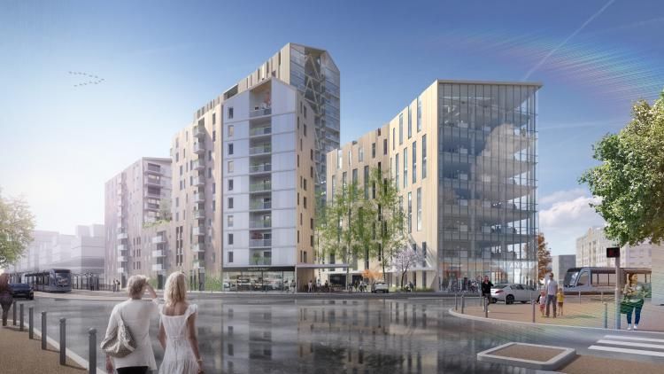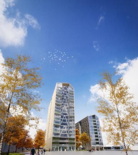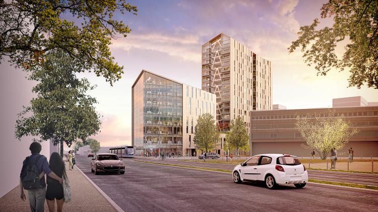 Projet mixte comprenant une tour de 18 étages, construite à 80% avec du bois