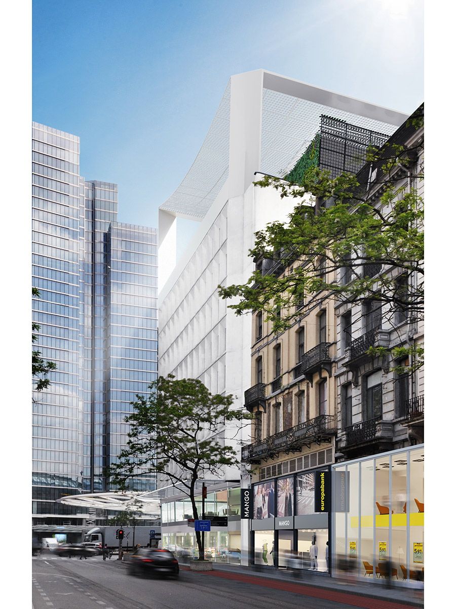 Début 2016, le maître d’ouvrage Botarogiercenter/Stephano Immo lance un concours restreint entre plusieurs bureaux d’architectes ayant pour objectif de réinventer son immeuble faisant face à la Place Rogier et formant les angles de la Rue Neuve et du Boulevard Adolphe Max avec la petite ceinture de Bruxelles. La proposition devra être novatrice et emblématique d’une volonté de changement. C’est le projet de Sunsoak design / Ney & Partners qui a été retenu et qui sera le premier ouvrage des architectes et ingénieurs de Laurent Ney avec le bureau Sunsoak spécialisé en architecture solaire. Fondé par Jean-Didier Steenackers, il est aujourd’hui intégré au bureau Ney & Partners.