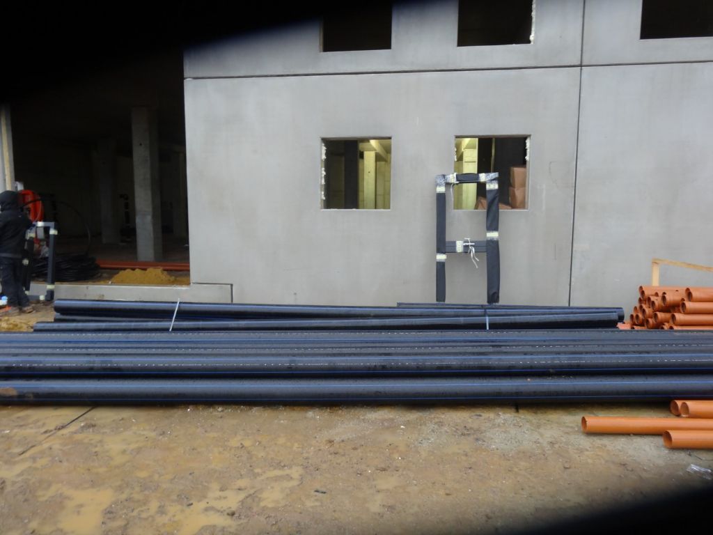 Pour la réalisation de ce réseau d’égouttage particulier, la société Willy Naessens, chargée de la construction du bâtiment, a fait appel à l’entreprise générale Nonet. Celle-ci a utilisé des tuyaux sous pression PE sdr11 (en polyéthylène à haute densité), électro-soudés, fournis par Deschacht. « C’est un projet important pour nous », explique Samuel Mazzacavallo, account manager chez Deschacht. « Au total, nous avons livré +/- 240 m de tuyaux Ø110, 120 m de Ø200 et 160 m de Ø160 ainsi que tous les accessoires pour le montage et l’installation. »