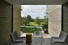 « Nous voulions établir à nouveau une référence écologique tant au niveau des matériaux utilisés : structure bois, bardage bois, panneaux bois, isolation cellulose, châssis bois, plancher bois, escalier bois … qu’au niveau des techniques, avec la régulation de la température via pompe à chaleur réversible et des poutres froides couplées à la ventilation double flux, des panneaux solaires photovoltaïques avec batterie de stockage, des protections solaires automatisées, une gestion de l’éclairage via des détecteurs de présence et d’intensité lumineuse ou un éclairage full Led. »