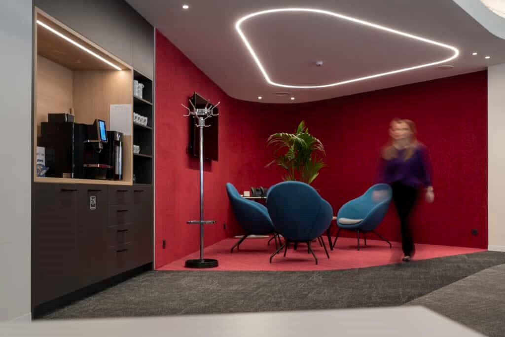 « Pour chaque projet, nous commençons par une enquête approfondie sur ce dont les employés ont besoin pour être heureux et productifs dans leur environnement de travail », explique Karoline. « Cela signifie écouter leurs souhaits et les traduire dans un design qui accompagne et soutient leur façon de travailler. ».