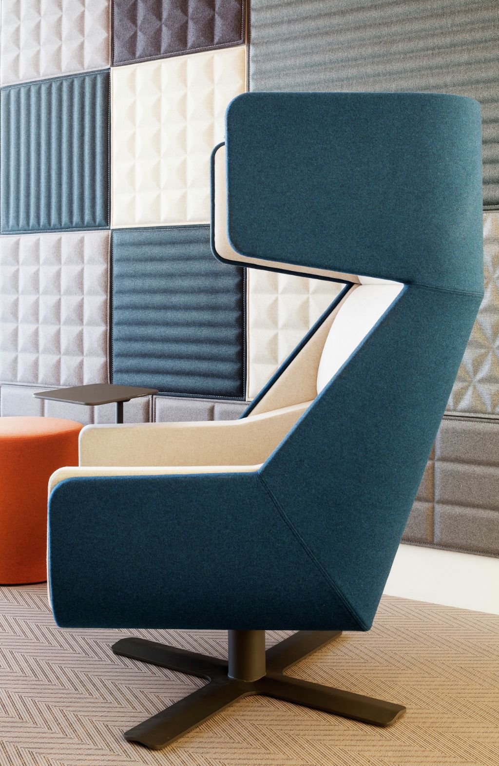 BuzziMe Low est composé d’un dossier bas, d’un pied pivotant et d’accoudoirs qui peuvent être équipés d’une tablette très pratique, pour poser votre livre, votre ordinateur portable, votre tasse de café ou même votre bras. Pour encore plus de confort, vous pouvez aisément combiner ce fauteuil au repose-pieds BuzziMe Ottoman. Grâce aux propriétés acoustiques de la matière utilisée et à son design ouvert, ce nouveau fauteuil trouvera parfaitement sa place dans des espaces ouverts.