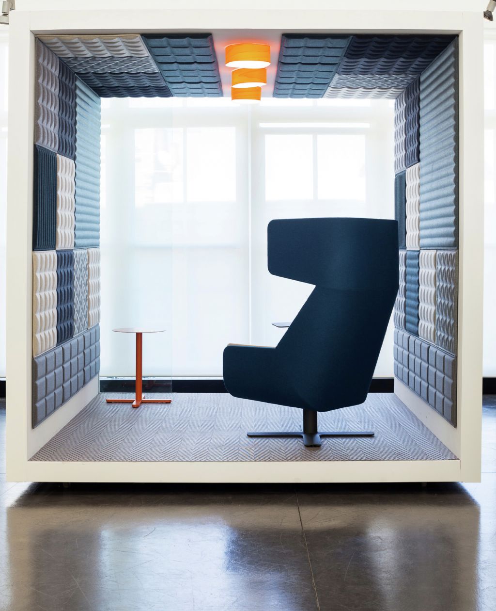 La nouvelle version de ce siège a toujours le look moderne et sophistiqué du premier BuzziMe. Grâce à un design ouvert, sans le « cocon » que l’on retrouve dans le premier modèle, Axel Enthoven nous invite ici à avoir des discussions ouvertes et confidentielles. En outre, les propriétés acoustiques de la matière sont conservées. Ce nouveau modèle est donc idéal pour des conversations tranquilles dans un environnement ouvert.